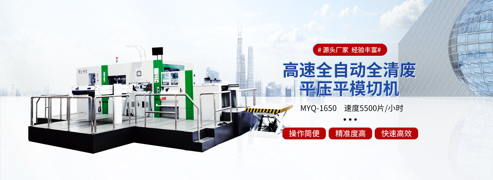 沧州瑞杰纸箱机械有限公司是一家集研发,制造,销售为一体的生产系列模切设备厂家。我们拥有现代化的机械加工设备,秉承“以质量求生存,以科技促发展”的宗旨,先进的模切技术,给广大客户带来更高的经济效益。 公司自创立以来,励精图治,锐意创新,产品规格逐渐完善,质量不断提升,市场持续扩大,产品遍布全国并出口世界102个国家。多次被评为河北省质量检验合格企业,产品质量放心企业。率先通过ISO9001:2008国际质量体系认证、欧盟CE认证,保证了产品质量的标准性和稳定性,确保更快速,便捷的为客户提供高速率,低成本,自动化,高精度的印后加工设备。 瑞杰系列模切机,以“瑞杰”“恒盛” 为注册商标。面对市场的瞬息万变和客户日益增长的需求,瑞杰人持续创新,以提高产品品质,完善服务,博采众长,精心设计,制造每一件产品,更加坚定从客户需求,客户利益出发,成为客户信赖的朋友。 Cangzhou Ruijie Carton Mac...